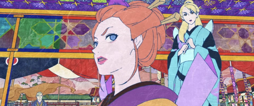 ‘모노노케’의 가장 큰 특징은 우키요에(浮世絵)와 와시(和紙) 질감을 활용한 독특한 시각 스타일입니다.
